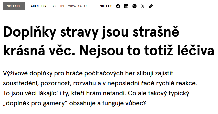 Je zajisté dobrá otázka, proč byste se měli – jako běžní lidé – zajímat o to, co je v doplňcích stravy určených pro velmi specifickou komunitu lidí (samozřejmě pokud do ní sami nepatříte). Jako člověk, který se celý svůj profesní život rýpe v buňkách a molekulách, si neodpustím poukázání na jen obtížně vyvratitelný fakt: tyto komunity lidí mají, co do fungování těla, nepopiratelné shody se zbytkem populace.